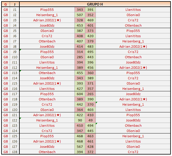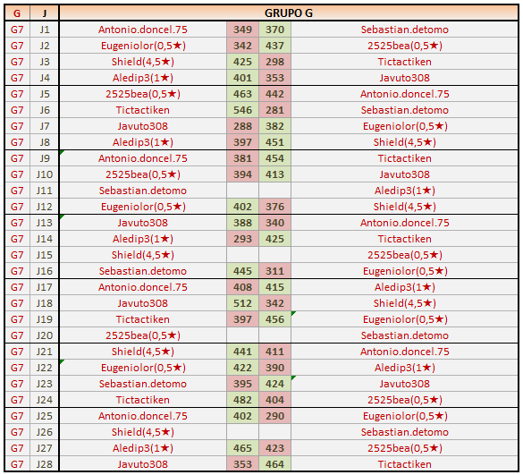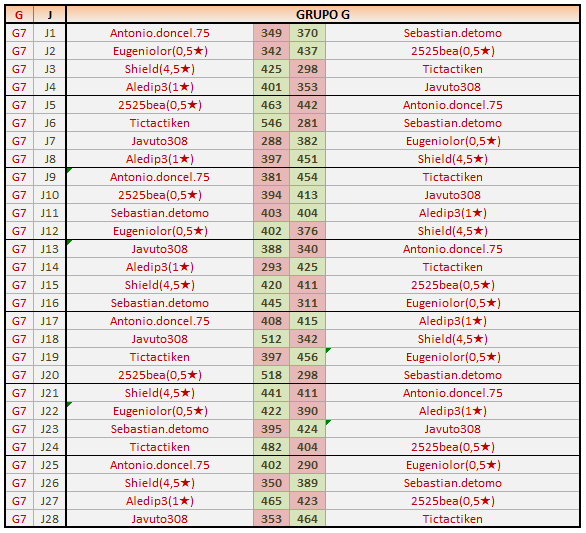 Deja un comentarioEn está página se irán publicando los resultados de las diferentes partidas, siendo ambos jugadores los responsables de subirlos, o comprobando que ya hayan sido subidos, insertando un COMENTARIO en la parte inferior de la pantalla (opción “Deja tu comentario“), indicando el nombre de los dos jugadores y los puntos obtenidos en la partida.