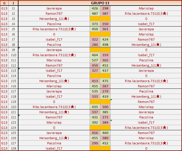 Deja un comentarioEn está página se irán publicando los resultados de las diferentes partidas, siendo ambos jugadores los responsables de subirlos, o comprobando que ya hayan sido subidos, insertando un COMENTARIO en la parte inferior de la pantalla (opción «Deja tu comentario«), indicando el nombre de los dos jugadores y los puntos obtenidos en la partida.
