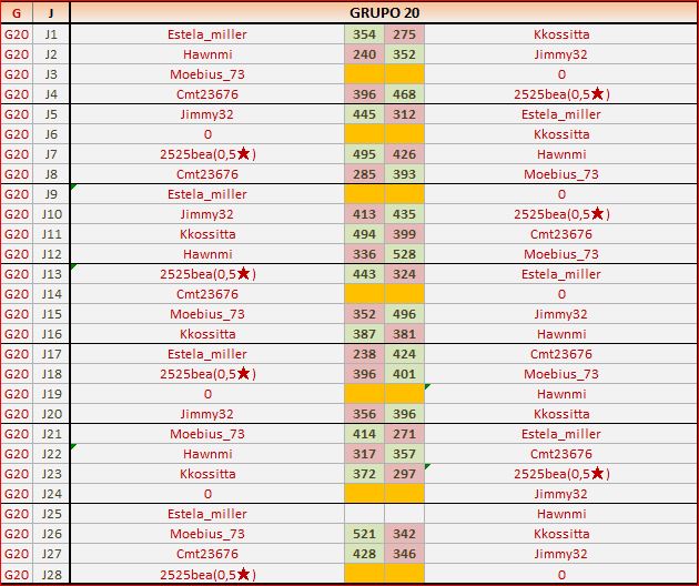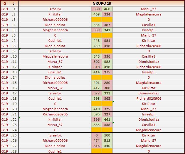 Deja un comentarioEn está página se irán publicando los resultados de las diferentes partidas, siendo ambos jugadores los responsables de subirlos, o comprobando que ya hayan sido subidos, insertando un COMENTARIO en la parte inferior de la pantalla (opción «Deja tu comentario«), indicando el nombre de los dos jugadores y los puntos obtenidos en la partida.