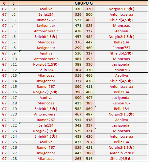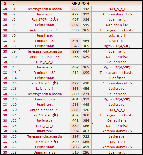 Deja un comentarioEn está página se irán publicando los resultados de las diferentes partidas, siendo ambos jugadores los responsables de subirlos, o comprobando que ya hayan sido subidos, insertando un COMENTARIO en la parte inferior de la pantalla (opción “Deja tu comentario“), indicando el nombre de los dos jugadores y los puntos obtenidos en la partida.