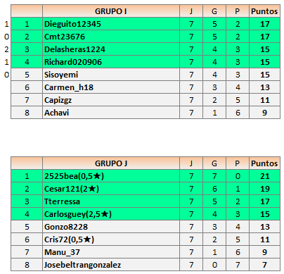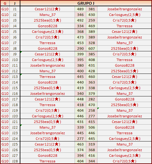 Deja un comentarioEn está página se irán publicando los resultados de las diferentes partidas, siendo ambos jugadores los responsables de subirlos, o comprobando que ya hayan sido subidos, insertando un COMENTARIO en la parte inferior de la pantalla (opción “Deja tu comentario“), indicando el nombre de los dos jugadores y los puntos obtenidos en la partida.