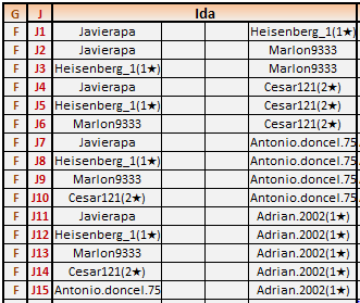Lasago, crís,carlosguey,eugeniolor, dimare, mariano, mariajj, el gran Sergio y su mujer , imparables en todos los sentidos….mi gran oscar con el cual lucho en lai y el ojalá futuro ganador del 76….y sobre todo a mi gran compañera NURIA (que me llena el móvil de capturas), como tapa el tablero la gran campeona, gracias y vamos a darlo todo en el torneo de parejas. Me quedarán muchos atrás, gracias a todos ellos.