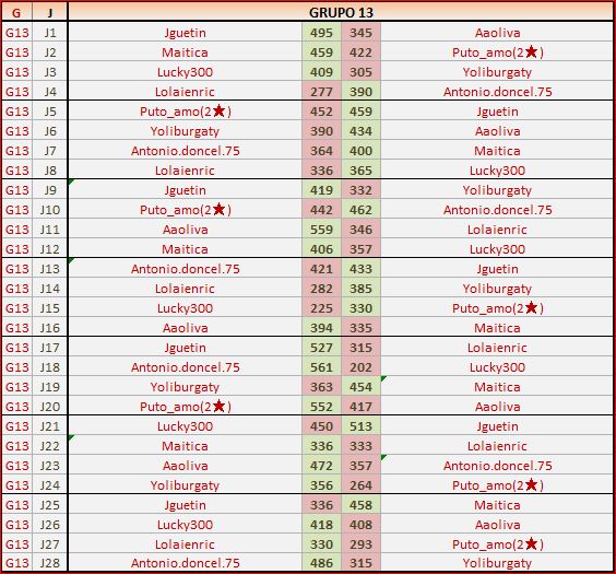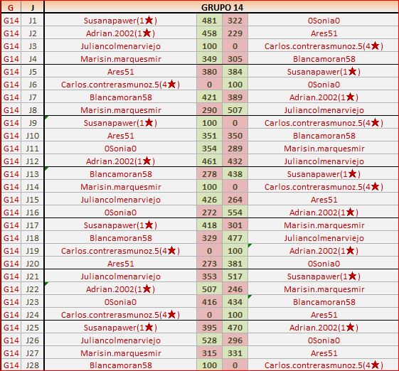 Deja un comentarioEn está página se irán publicando los resultados de las diferentes partidas, siendo ambos jugadores los responsables de subirlos, o comprobando que ya hayan sido subidos, insertando un COMENTARIO en la parte inferior de la pantalla (opción “Deja tu comentario“), indicando el nombre de los dos jugadores y los puntos obtenidos en la partida.
