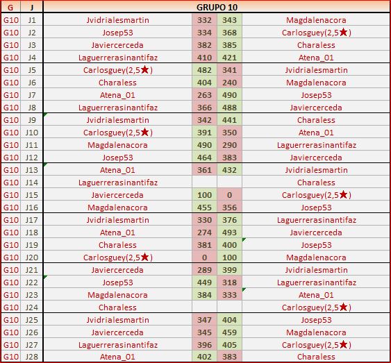 Deja un comentarioEn está página se irán publicando los resultados de las diferentes partidas, siendo ambos jugadores los responsables de subirlos, o comprobando que ya hayan sido subidos, insertando un COMENTARIO en la parte inferior de la pantalla (opción “Deja tu comentario“), indicando el nombre de los dos jugadores y los puntos obtenidos en la partida.