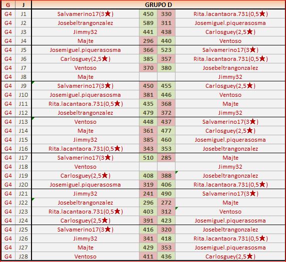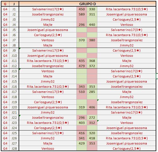 Deja un comentarioEn está página se irán publicando los resultados de las diferentes partidas, siendo ambos jugadores los responsables de subirlos, o comprobando que ya hayan sido subidos, insertando un COMENTARIO en la parte inferior de la pantalla (opción “Deja tu comentario“), indicando el nombre de los dos jugadores y los puntos obtenidos en la partida.