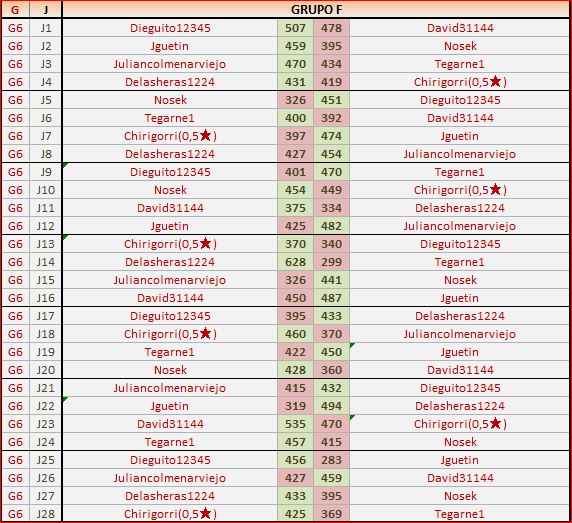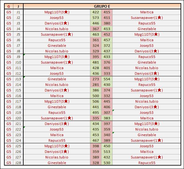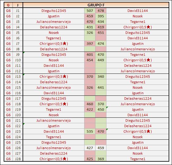 Deja un comentarioEn está página se irán publicando los resultados de las diferentes partidas, siendo ambos jugadores los responsables de subirlos, o comprobando que ya hayan sido subidos, insertando un COMENTARIO en la parte inferior de la pantalla (opción “Deja tu comentario“), indicando el nombre de los dos jugadores y los puntos obtenidos en la partida.
