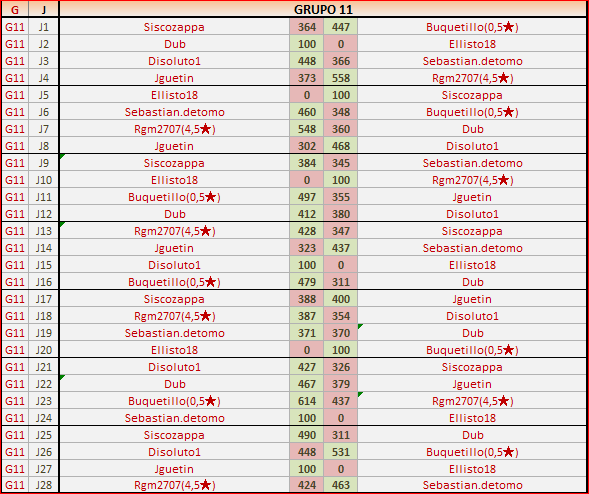 Deja un comentarioEn está página se irán publicando los resultados de las diferentes partidas, siendo ambos jugadores los responsables de subirlos, o comprobando que ya hayan sido subidos, insertando un COMENTARIO en la parte inferior de la pantalla (opción “Deja tu comentario“), indicando el nombre de los dos jugadores y los puntos obtenidos en la partida.