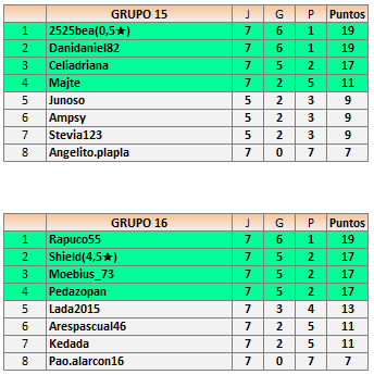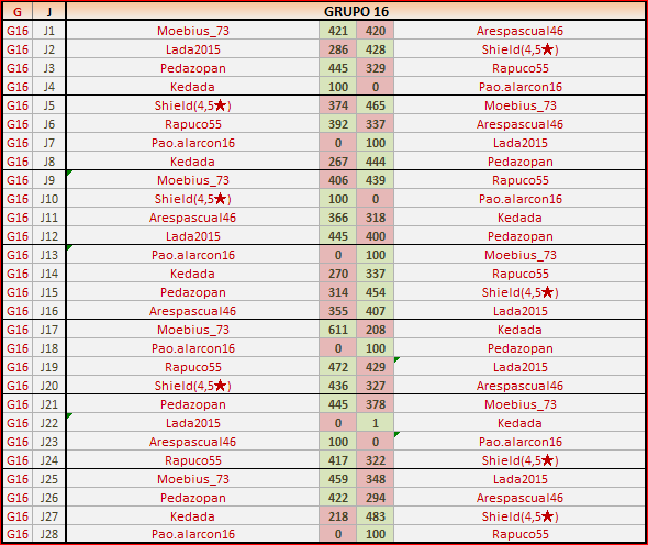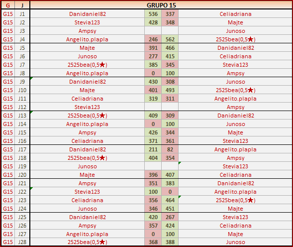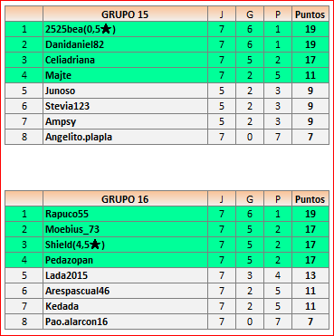 Deja un comentarioEn está página se irán publicando los resultados de las diferentes partidas, siendo ambos jugadores los responsables de subirlos, o comprobando que ya hayan sido subidos, insertando un COMENTARIO en la parte inferior de la pantalla (opción “Deja tu comentario“), indicando el nombre de los dos jugadores y los puntos obtenidos en la partida.