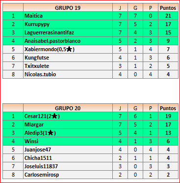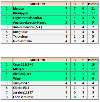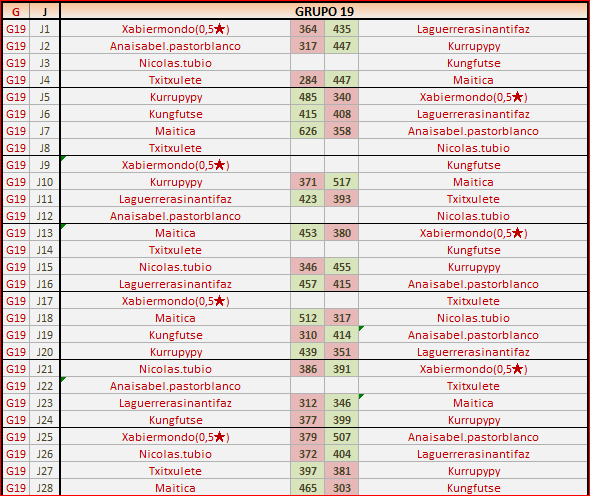 Deja un comentarioEn está página se irán publicando los resultados de las diferentes partidas, siendo ambos jugadores los responsables de subirlos, o comprobando que ya hayan sido subidos, insertando un COMENTARIO en la parte inferior de la pantalla (opción “Deja tu comentario“), indicando el nombre de los dos jugadores y los puntos obtenidos en la partida.