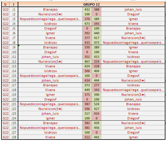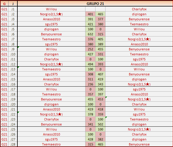 Deja un comentarioEn está página se irán publicando los resultados de las diferentes partidas, siendo ambos jugadores los responsables de subirlos, o comprobando que ya hayan sido subidos, insertando un COMENTARIO en la parte inferior de la pantalla (opción “Deja tu comentario“), indicando el nombre de los dos jugadores y los puntos obtenidos en la partida.