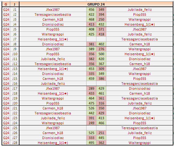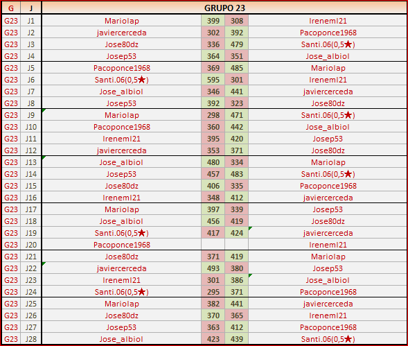 Deja un comentarioEn está página se irán publicando los resultados de las diferentes partidas, siendo ambos jugadores los responsables de subirlos, o comprobando que ya hayan sido subidos, insertando un COMENTARIO en la parte inferior de la pantalla (opción “Deja tu comentario“), indicando el nombre de los dos jugadores y los puntos obtenidos en la partida.