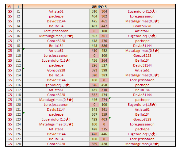 Deja un comentarioEn está página se irán publicando los resultados de las diferentes partidas, siendo ambos jugadores los responsables de subirlos, o comprobando que ya hayan sido subidos, insertando un COMENTARIO en la parte inferior de la pantalla (opción “Deja tu comentario“), indicando el nombre de los dos jugadores y los puntos obtenidos en la partida.