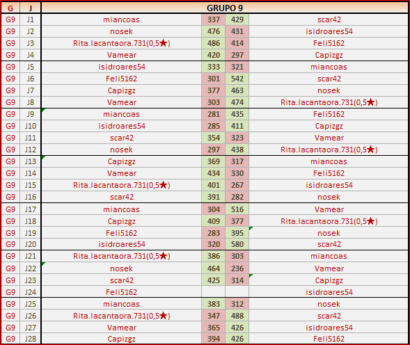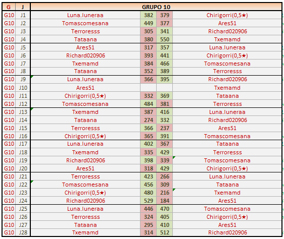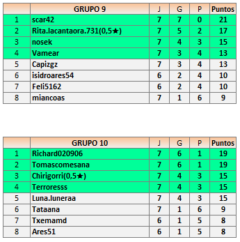 Deja un comentarioEn está página se irán publicando los resultados de las diferentes partidas, siendo ambos jugadores los responsables de subirlos, o comprobando que ya hayan sido subidos, insertando un COMENTARIO en la parte inferior de la pantalla (opción “Deja tu comentario“), indicando el nombre de los dos jugadores y los puntos obtenidos en la partida.