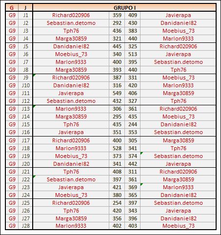 Deja un comentarioEn está página se irán publicando los resultados de las diferentes partidas, siendo ambos jugadores los responsables de subirlos, o comprobando que ya hayan sido subidos, insertando un COMENTARIO en la parte inferior de la pantalla (opción “Deja tu comentario“), indicando el nombre de los dos jugadores y los puntos obtenidos en la partida.