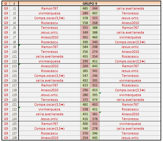 Deja un comentarioEn está página se irán publicando los resultados de las diferentes partidas, siendo ambos jugadores los responsables de subirlos, o comprobando que ya hayan sido subidos, insertando un COMENTARIO en la parte inferior de la pantalla (opción “Deja tu comentario“), indicando el nombre de los dos jugadores y los puntos obtenidos en la partida.