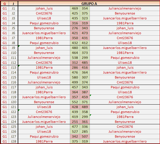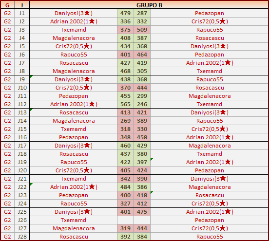 Deja un comentarioEn está página se irán publicando los resultados de las diferentes partidas, siendo ambos jugadores los responsables de subirlos, o comprobando que ya hayan sido subidos, insertando un COMENTARIO en la parte inferior de la pantalla (opción “Deja tu comentario“), indicando el nombre de los dos jugadores y los puntos obtenidos en la partida.