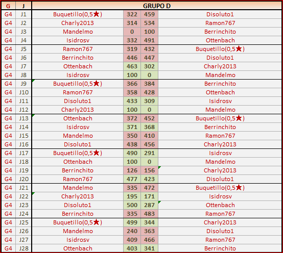 Deja un comentarioEn está página se irán publicando los resultados de las diferentes partidas, siendo ambos jugadores los responsables de subirlos, o comprobando que ya hayan sido subidos, insertando un COMENTARIO en la parte inferior de la pantalla (opción “Deja tu comentario“), indicando el nombre de los dos jugadores y los puntos obtenidos en la partida.