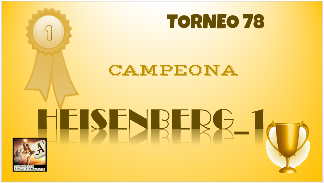 Y mi enhorabuena especial para Heisenberg, estás que te sales cariño!! En el poco tiempo que llevas aquí lo estás ganando todo y sólo con suerte no se gana, hay que saber jugar y tu sabes mucho.
