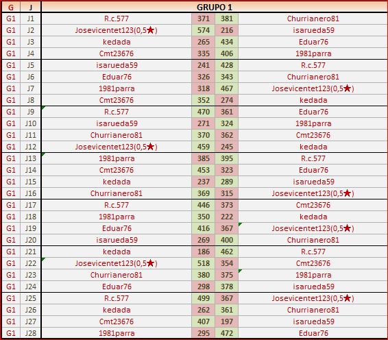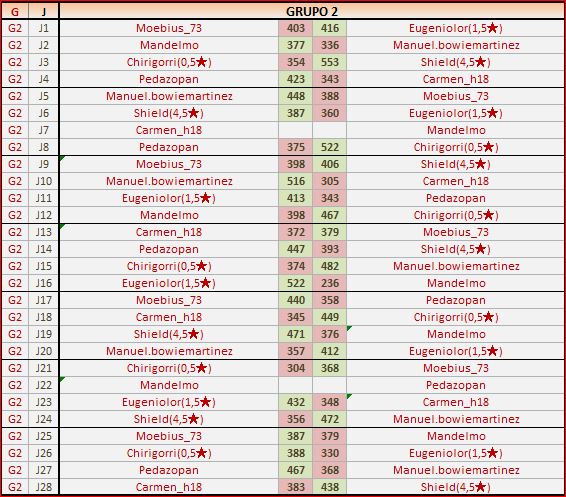 Deja un comentarioEn está página se irán publicando los resultados de las diferentes partidas, siendo ambos jugadores los responsables de subirlos, o comprobando que ya hayan sido subidos, insertando un COMENTARIO en la parte inferior de la pantalla (opción “Deja tu comentario“), indicando el nombre de los dos jugadores y los puntos obtenidos en la partida.