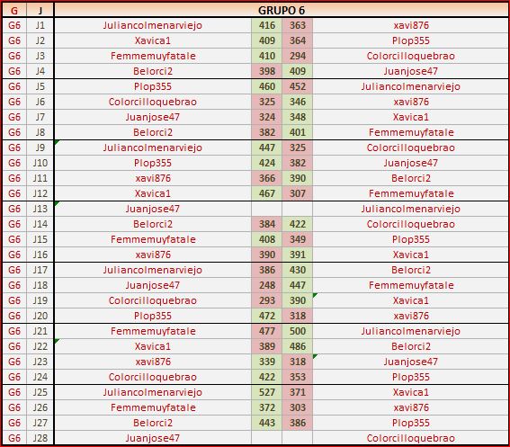 Deja un comentarioEn está página se irán publicando los resultados de las diferentes partidas, siendo ambos jugadores los responsables de subirlos, o comprobando que ya hayan sido subidos, insertando un COMENTARIO en la parte inferior de la pantalla (opción “Deja tu comentario“), indicando el nombre de los dos jugadores y los puntos obtenidos en la partida.