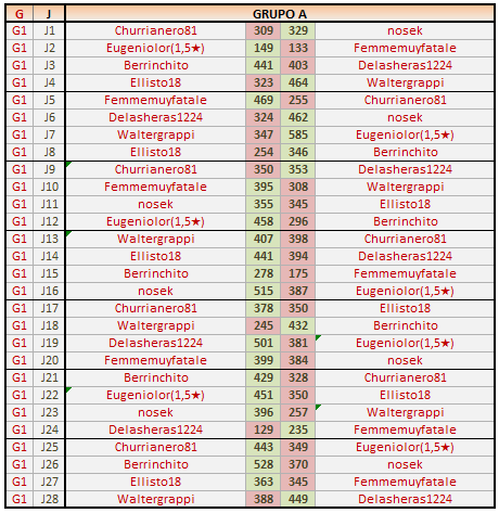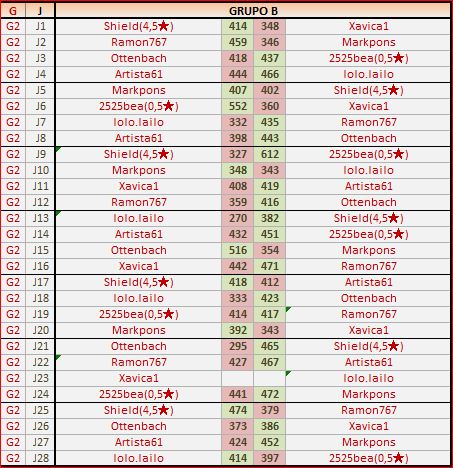 Deja un comentarioEn está página se irán publicando los resultados de las diferentes partidas, siendo ambos jugadores los responsables de subirlos, o comprobando que ya hayan sido subidos, insertando un COMENTARIO en la parte inferior de la pantalla (opción “Deja tu comentario“), indicando el nombre de los dos jugadores y los puntos obtenidos en la partida.