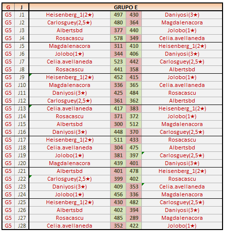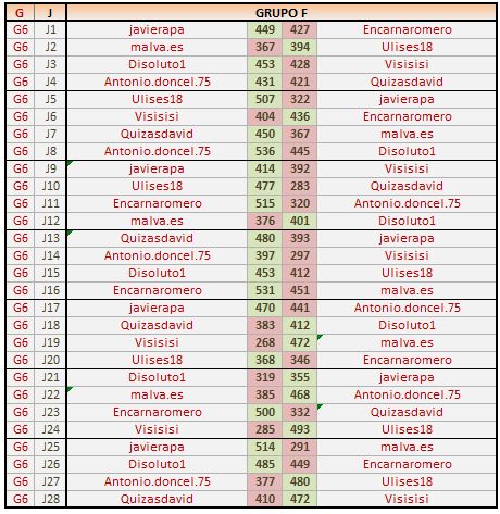 Deja un comentarioEn está página se irán publicando los resultados de las diferentes partidas, siendo ambos jugadores los responsables de subirlos, o comprobando que ya hayan sido subidos, insertando un COMENTARIO en la parte inferior de la pantalla (opción “Deja tu comentario“), indicando el nombre de los dos jugadores y los puntos obtenidos en la partida.