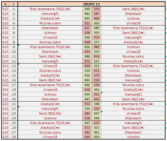 Deja un comentarioEn está página se irán publicando los resultados de las diferentes partidas, siendo ambos jugadores los responsables de subirlos, o comprobando que ya hayan sido subidos, insertando un COMENTARIO en la parte inferior de la pantalla (opción “Deja tu comentario“), indicando el nombre de los dos jugadores y los puntos obtenidos en la partida.