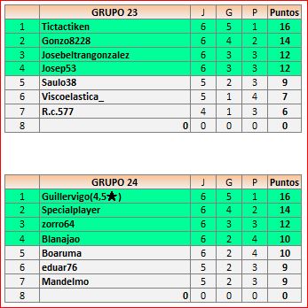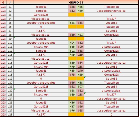 Deja un comentarioEn está página se irán publicando los resultados de las diferentes partidas, siendo ambos jugadores los responsables de subirlos, o comprobando que ya hayan sido subidos, insertando un COMENTARIO en la parte inferior de la pantalla (opción “Deja tu comentario“), indicando el nombre de los dos jugadores y los puntos obtenidos en la partida.