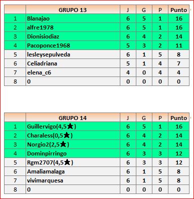Deja un comentarioEn está página se irán publicando los resultados de las diferentes partidas, siendo ambos jugadores los responsables de subirlos, o comprobando que ya hayan sido subidos, insertando un COMENTARIO en la parte inferior de la pantalla (opción “Deja tu comentario“), indicando el nombre de los dos jugadores y los puntos obtenidos en la partida.