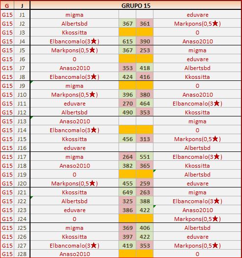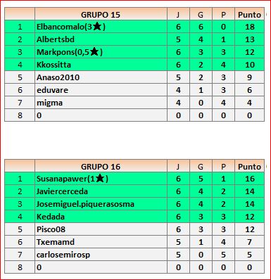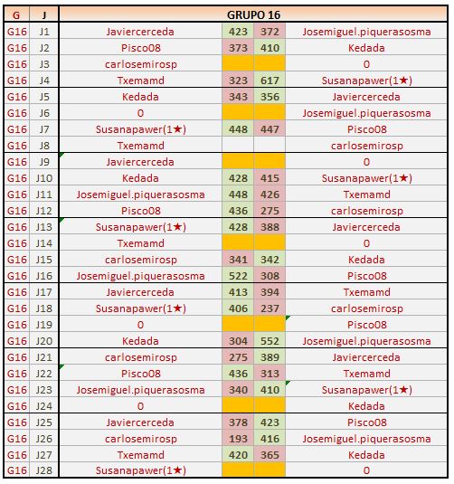 Deja un comentarioEn está página se irán publicando los resultados de las diferentes partidas, siendo ambos jugadores los responsables de subirlos, o comprobando que ya hayan sido subidos, insertando un COMENTARIO en la parte inferior de la pantalla (opción “Deja tu comentario“), indicando el nombre de los dos jugadores y los puntos obtenidos en la partida.