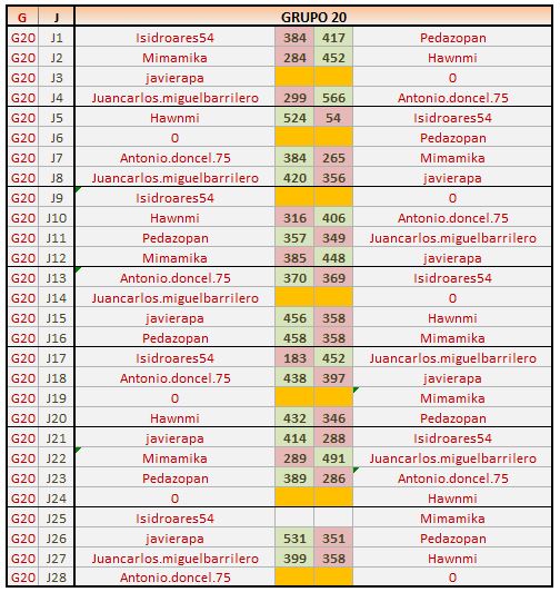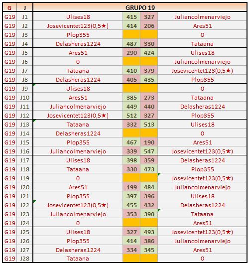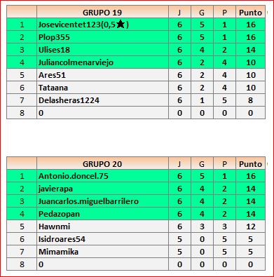 Deja un comentarioEn está página se irán publicando los resultados de las diferentes partidas, siendo ambos jugadores los responsables de subirlos, o comprobando que ya hayan sido subidos, insertando un COMENTARIO en la parte inferior de la pantalla (opción “Deja tu comentario“), indicando el nombre de los dos jugadores y los puntos obtenidos en la partida.