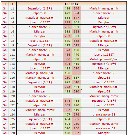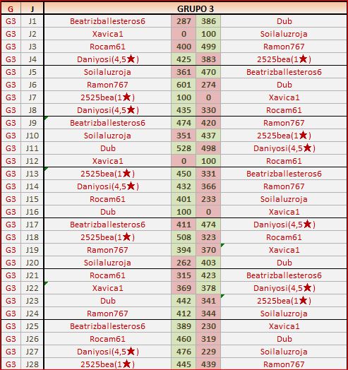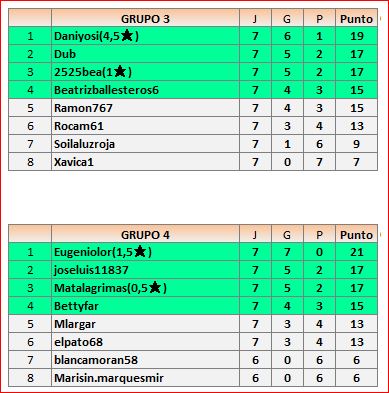 Deja un comentarioEn está página se irán publicando los resultados de las diferentes partidas, siendo ambos jugadores los responsables de subirlos, o comprobando que ya hayan sido subidos, insertando un COMENTARIO en la parte inferior de la pantalla (opción “Deja tu comentario“), indicando el nombre de los dos jugadores y los puntos obtenidos en la partida.