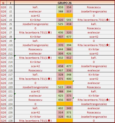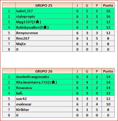 Deja un comentarioEn está página se irán publicando los resultados de las diferentes partidas, siendo ambos jugadores los responsables de subirlos, o comprobando que ya hayan sido subidos, insertando un COMENTARIO en la parte inferior de la pantalla (opción “Deja tu comentario“), indicando el nombre de los dos jugadores y los puntos obtenidos en la partida.