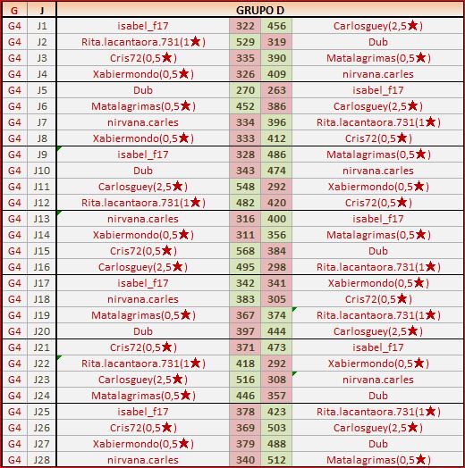 Deja un comentarioEn está página se irán publicando los resultados de las diferentes partidas, siendo ambos jugadores los responsables de subirlos, o comprobando que ya hayan sido subidos, insertando un COMENTARIO en la parte inferior de la pantalla (opción “Deja tu comentario“), indicando el nombre de los dos jugadores y los puntos obtenidos en la partida.