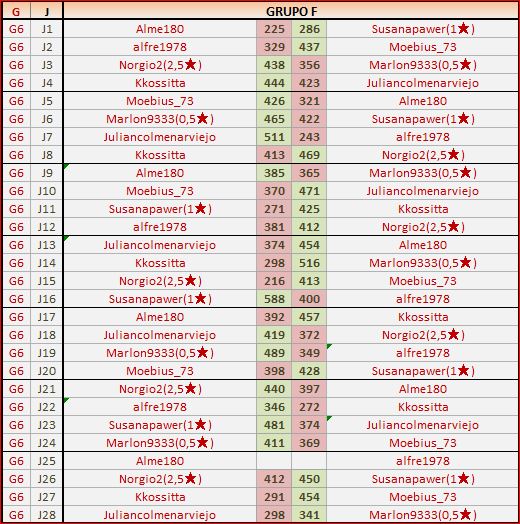 Deja un comentarioEn está página se irán publicando los resultados de las diferentes partidas, siendo ambos jugadores los responsables de subirlos, o comprobando que ya hayan sido subidos, insertando un COMENTARIO en la parte inferior de la pantalla (opción “Deja tu comentario“), indicando el nombre de los dos jugadores y los puntos obtenidos en la partida.