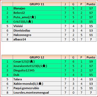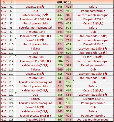 Deja un comentarioEn está página se irán publicando los resultados de las diferentes partidas, siendo ambos jugadores los responsables de subirlos, o comprobando que ya hayan sido subidos, insertando un COMENTARIO en la parte inferior de la pantalla (opción “Deja tu comentario“), indicando el nombre de los dos jugadores y los puntos obtenidos en la partida.