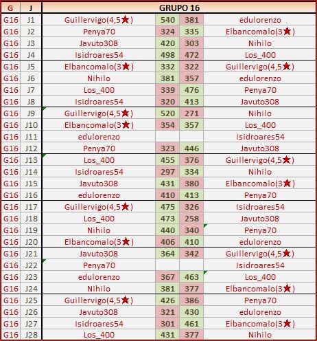 Deja un comentarioEn está página se irán publicando los resultados de las diferentes partidas, siendo ambos jugadores los responsables de subirlos, o comprobando que ya hayan sido subidos, insertando un COMENTARIO en la parte inferior de la pantalla (opción “Deja tu comentario“), indicando el nombre de los dos jugadores y los puntos obtenidos en la partida.