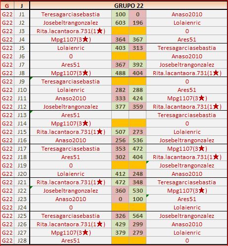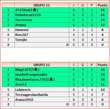 Deja un comentarioEn está página se irán publicando los resultados de las diferentes partidas, siendo ambos jugadores los responsables de subirlos, o comprobando que ya hayan sido subidos, insertando un COMENTARIO en la parte inferior de la pantalla (opción “Deja tu comentario“), indicando el nombre de los dos jugadores y los puntos obtenidos en la partida.