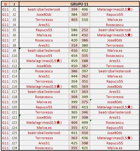 Deja un comentarioEn está página se irán publicando los resultados de las diferentes partidas, siendo ambos jugadores los responsables de subirlos, o comprobando que ya hayan sido subidos, insertando un COMENTARIO en la parte inferior de la pantalla (opción “Deja tu comentario“), indicando el nombre de los dos jugadores y los puntos obtenidos en la partida.