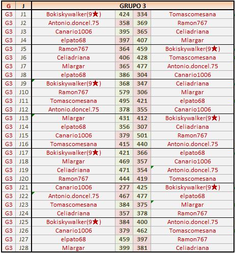 Deja un comentarioEn está página se irán publicando los resultados de las diferentes partidas, siendo ambos jugadores los responsables de subirlos, o comprobando que ya hayan sido subidos, insertando un COMENTARIO en la parte inferior de la pantalla (opción “Deja tu comentario“), indicando el nombre de los dos jugadores y los puntos obtenidos en la partida.