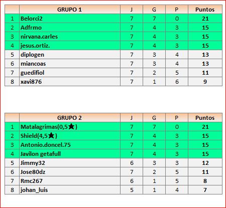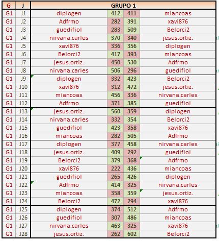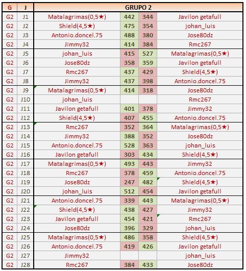 Deja un comentarioEn está página se irán publicando los resultados de las diferentes partidas, siendo ambos jugadores los responsables de subirlos, o comprobando que ya hayan sido subidos, insertando un COMENTARIO en la parte inferior de la pantalla (opción “Deja tu comentario“), indicando el nombre de los dos jugadores y los puntos obtenidos en la partida.