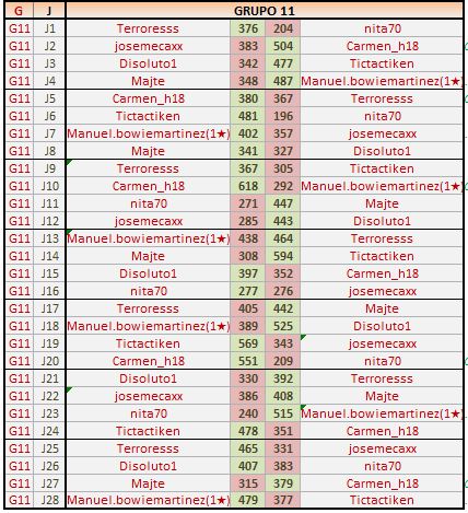 Deja un comentarioEn está página se irán publicando los resultados de las diferentes partidas, siendo ambos jugadores los responsables de subirlos, o comprobando que ya hayan sido subidos, insertando un COMENTARIO en la parte inferior de la pantalla (opción “Deja tu comentario“), indicando el nombre de los dos jugadores y los puntos obtenidos en la partida.