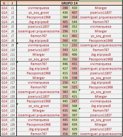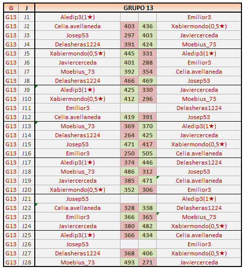 Deja un comentarioEn está página se irán publicando los resultados de las diferentes partidas, siendo ambos jugadores los responsables de subirlos, o comprobando que ya hayan sido subidos, insertando un COMENTARIO en la parte inferior de la pantalla (opción “Deja tu comentario“), indicando el nombre de los dos jugadores y los puntos obtenidos en la partida.