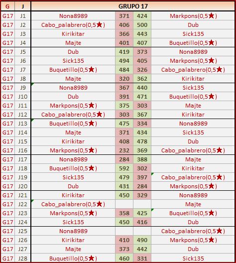 Deja un comentarioEn está página se irán publicando los resultados de las diferentes partidas, siendo ambos jugadores los responsables de subirlos, o comprobando que ya hayan sido subidos, insertando un COMENTARIO en la parte inferior de la pantalla (opción “Deja tu comentario“), indicando el nombre de los dos jugadores y los puntos obtenidos en la partida.