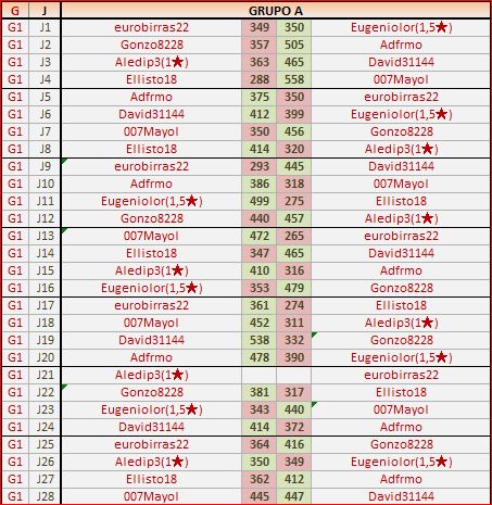 Deja un comentarioEn está página se irán publicando los resultados de las diferentes partidas, siendo ambos jugadores los responsables de subirlos, o comprobando que ya hayan sido subidos, insertando un COMENTARIO en la parte inferior de la pantalla (opción “Deja tu comentario“), indicando el nombre de los dos jugadores y los puntos obtenidos en la partida.