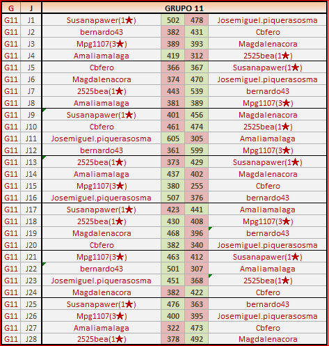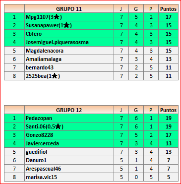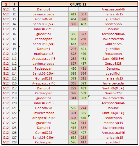 Deja un comentarioEn está página se irán publicando los resultados de las diferentes partidas, siendo ambos jugadores los responsables de subirlos, o comprobando que ya hayan sido subidos, insertando un COMENTARIO en la parte inferior de la pantalla (opción “Deja tu comentario“), indicando el nombre de los dos jugadores y los puntos obtenidos en la partida.