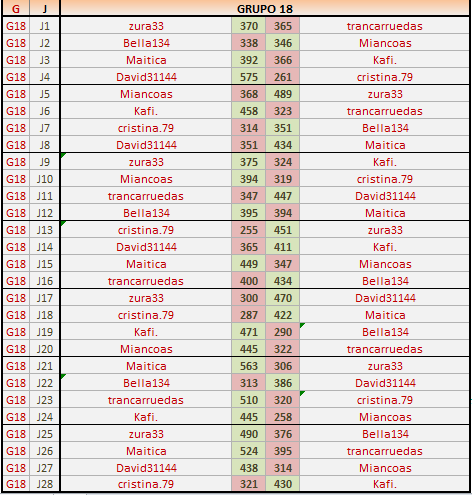 Deja un comentarioEn está página se irán publicando los resultados de las diferentes partidas, siendo ambos jugadores los responsables de subirlos, o comprobando que ya hayan sido subidos, insertando un COMENTARIO en la parte inferior de la pantalla (opción “Deja tu comentario“), indicando el nombre de los dos jugadores y los puntos obtenidos en la partida.