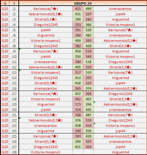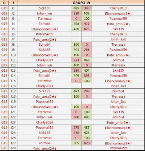 Deja un comentarioEn está página se irán publicando los resultados de las diferentes partidas, siendo ambos jugadores los responsables de subirlos, o comprobando que ya hayan sido subidos, insertando un COMENTARIO en la parte inferior de la pantalla (opción “Deja tu comentario“), indicando el nombre de los dos jugadores y los puntos obtenidos en la partida.