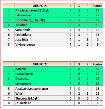Deja un comentarioEn está página se irán publicando los resultados de las diferentes partidas, siendo ambos jugadores los responsables de subirlos, o comprobando que ya hayan sido subidos, insertando un COMENTARIO en la parte inferior de la pantalla (opción “Deja tu comentario“), indicando el nombre de los dos jugadores y los puntos obtenidos en la partida.