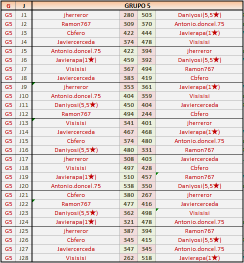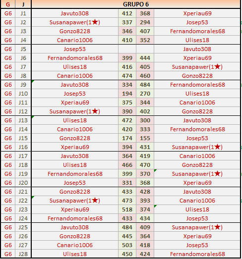 Deja un comentarioEn está página se irán publicando los resultados de las diferentes partidas, siendo ambos jugadores los responsables de subirlos, o comprobando que ya hayan sido subidos, insertando un COMENTARIO en la parte inferior de la pantalla (opción “Deja tu comentario“), indicando el nombre de los dos jugadores y los puntos obtenidos en la partida.